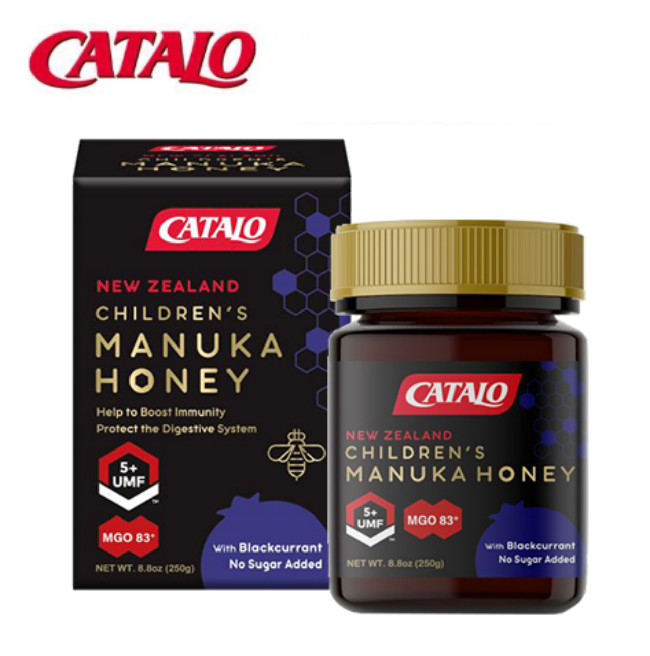CATALO/家得路 儿童活性麥蘆卡因子UMF5+黑加倫子味蜂蜜 250克