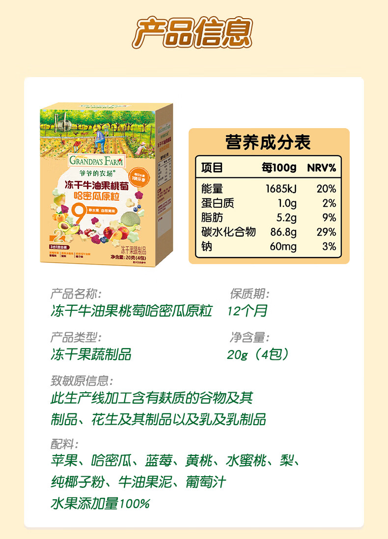 爷爷的农场冻干原粒20g桃桃梨、西梅水蜜桃、牛油果哈密瓜