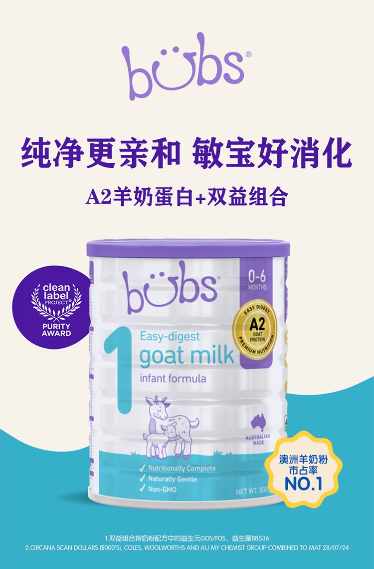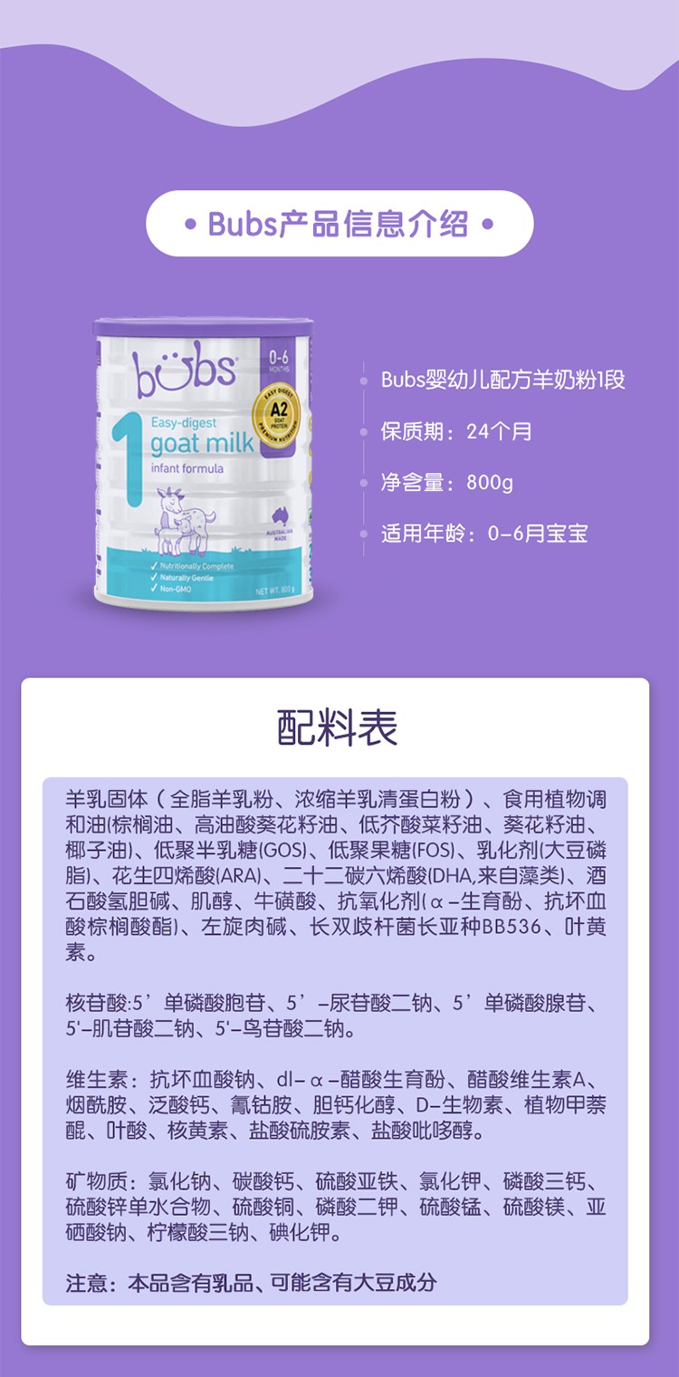 【品牌直供】Bubs 山羊奶粉第三代婴幼儿配方羊奶粉1段 800g