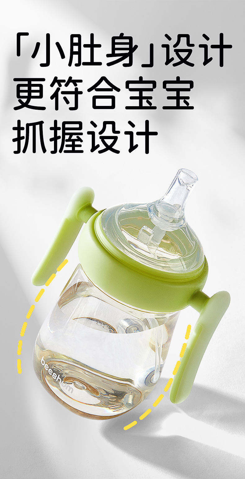 beeshum贝斯哈姆宝宝婴儿防呛奶瓶青柠绿-260mL【吸嘴杯+重力球款】