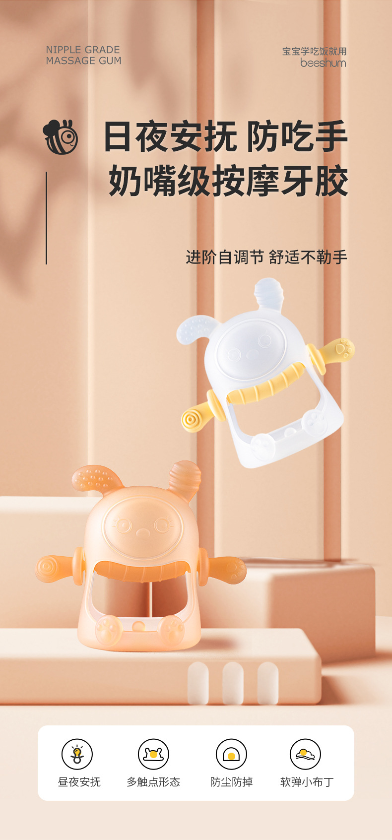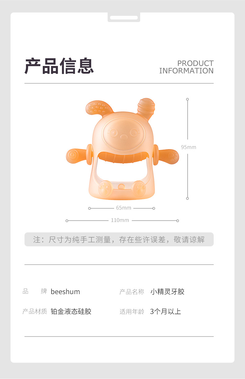 beeshum小精灵升级版兔子牙胶磨牙棒月牙白(送收纳盒)