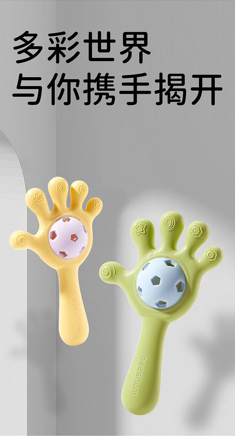 beeshum贝斯哈姆婴儿手摇铃玩具0-1岁益智牙胶青柠绿(带收纳盒)