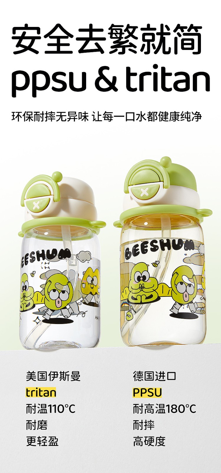 beeshum儿童水杯夏季吸管杯宝宝喝水直饮杯ritan款-青柠绿600ml