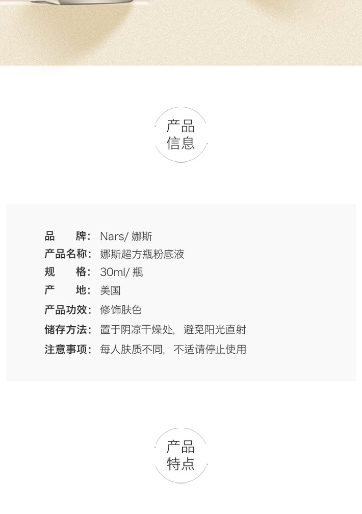 Nars超方瓶粉底液30ml  L3黄一白