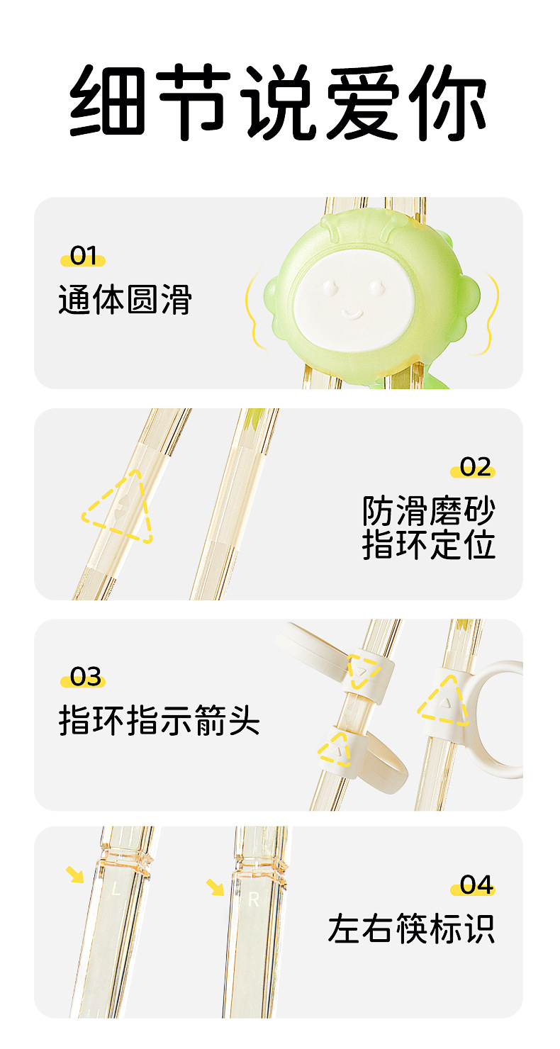 beeshum儿童筷子虎口训练筷青柠绿-挂卡包装【适合1-5岁学筷宝贝】